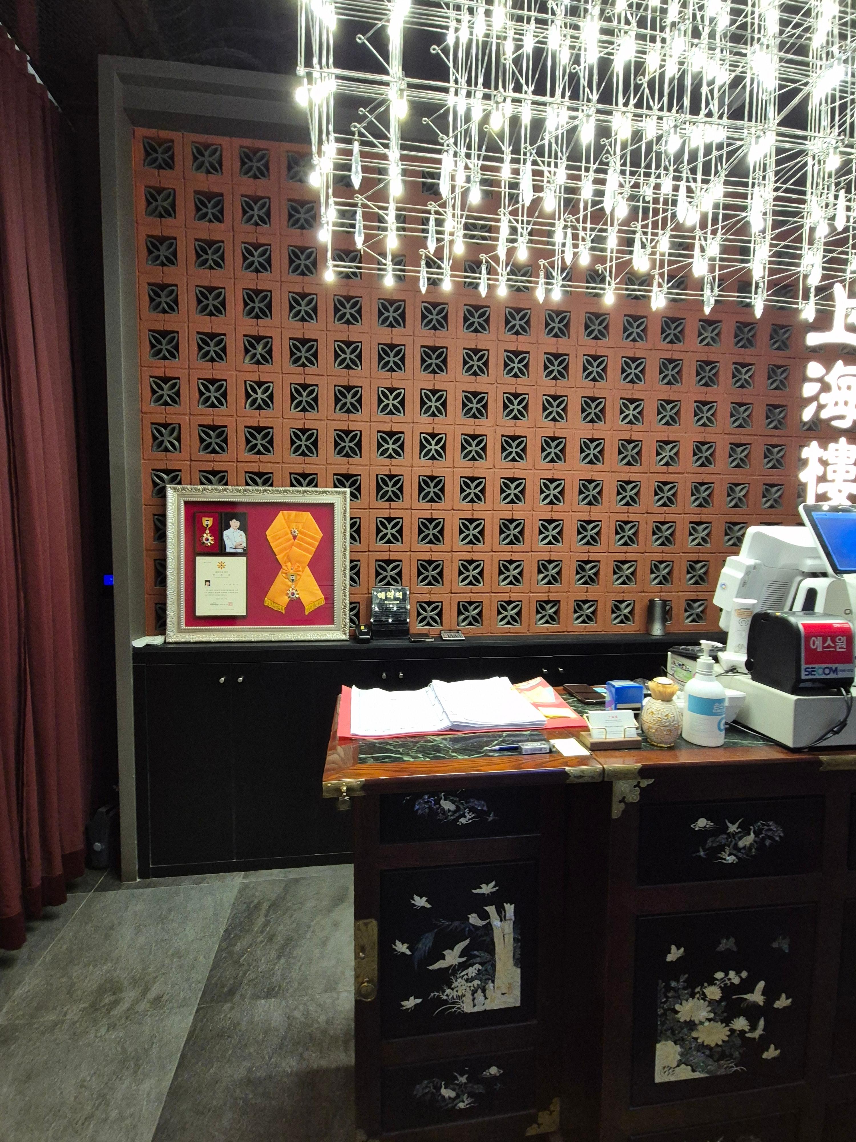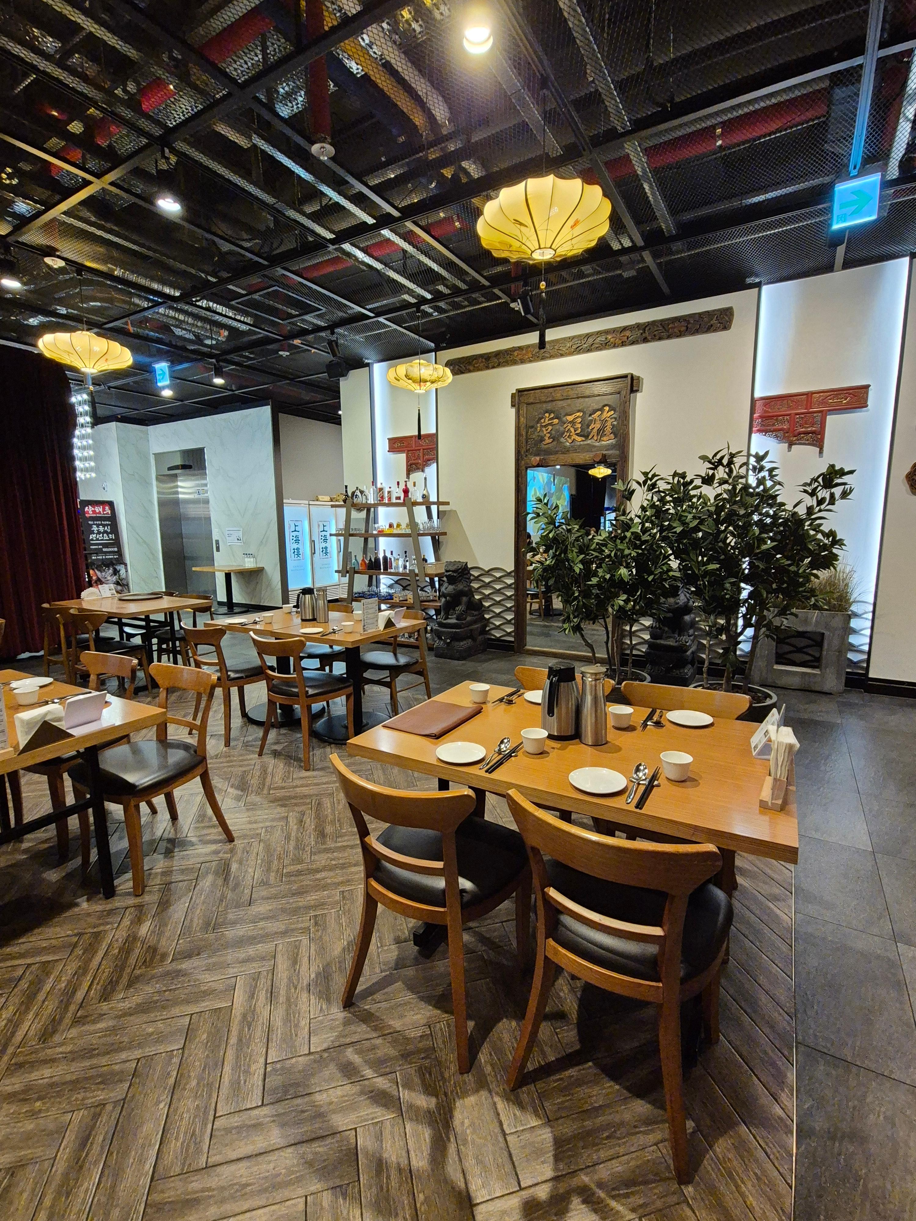 상해루는 겉보기엔 숨겨진 중식당처럼 느껴질 수 있지만, 문을 열고 들어서는 순간 고급 레스토랑 못지않은 품격이 느껴집니다. 넓은 홀과 프라이빗 룸이 마련되어 있어요. 특히 내부의 미디어 월은 고급 분위기를 자아냅니다.