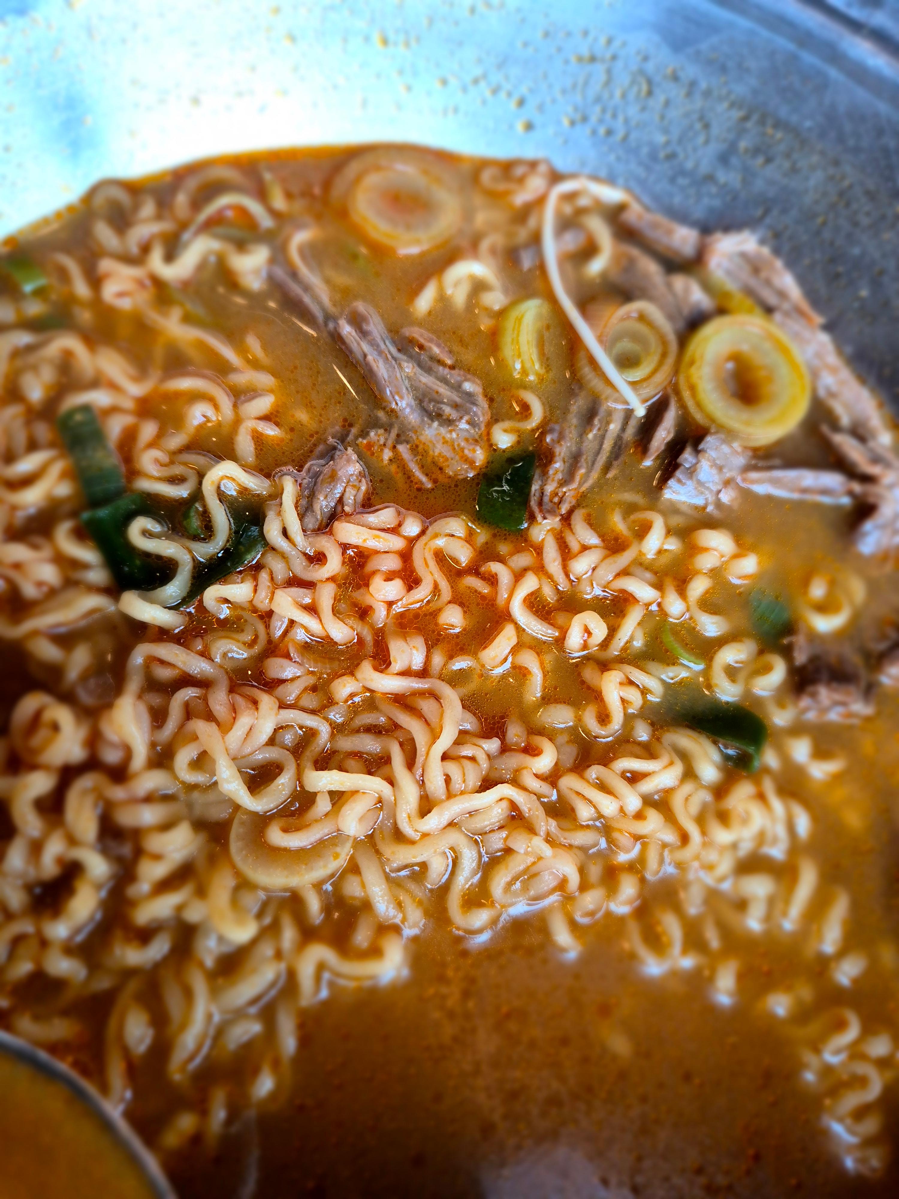 라면과 고기가 가득 들어있어 어디서도 맛 볼수 없는 라면 맛이 느껴집니다.
