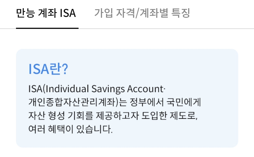 - ISA 전용 계좌는 1인 1계좌만 보유 가능